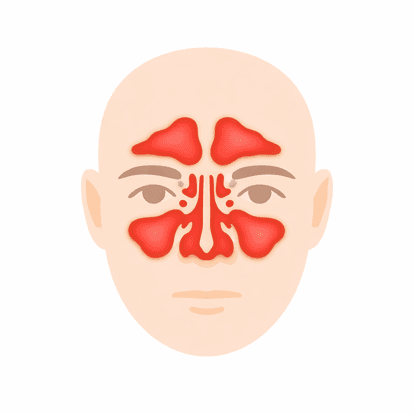 - Sinusite: inflamação dos seios da face, com dor facial, pressão e secreção espessa.
